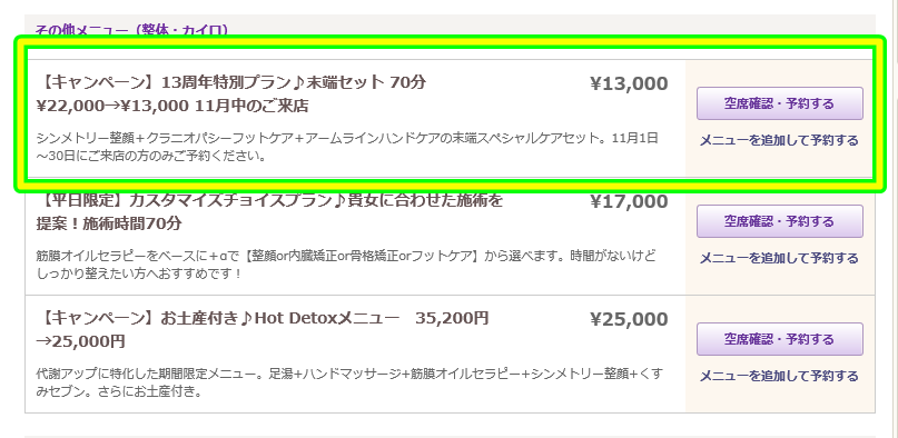 13周年感謝特典③★★【整顔+手+足の末端セットが13,000円!】★★