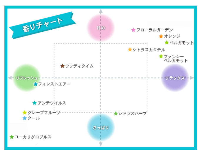 ティートリー、ユーカリなど抗菌特性を持ったものが配合されていて清潔感のある香りです。