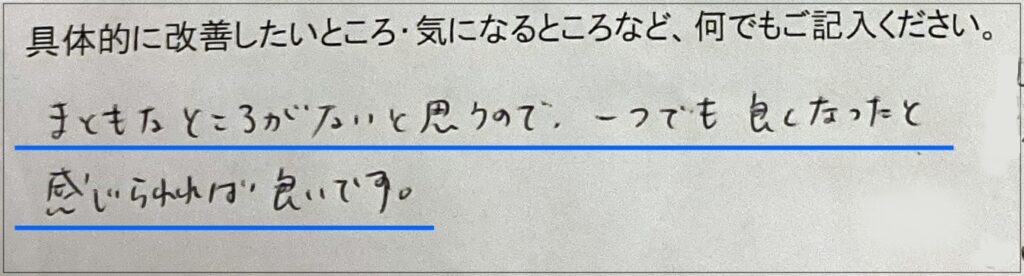 終わってみれば、3つの項目で改善を感じてくださいました。