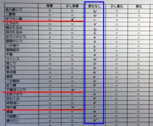 終了時のチェックシートでは「改善」が0項目