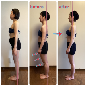 でも「このモニターさんも最初は前のめりでしたから。そのうち真っすぐ立てるようになりますよ^^」と経過も共有して【視覚でイメージ】していただきました。