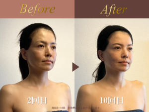 特に嬉しかったのは、顔痩せしてもたるまず、キュッと引き締まって上に上がった感じだったそうです。