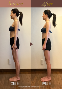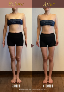 ※初回は先述したとおり、単発モニターだったため写真撮影なし、2回目から撮影開始したため、向かって左が2回目、右が10回目です。